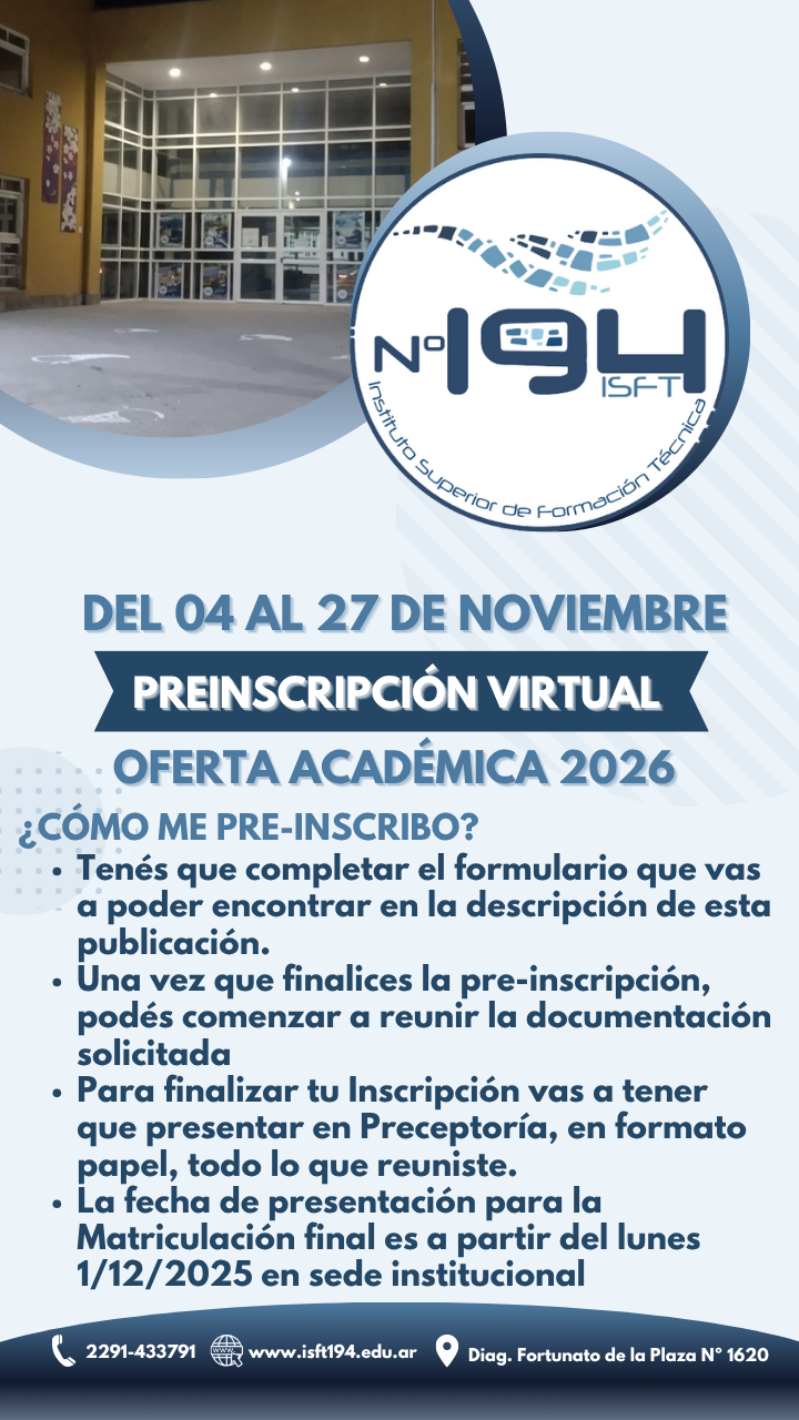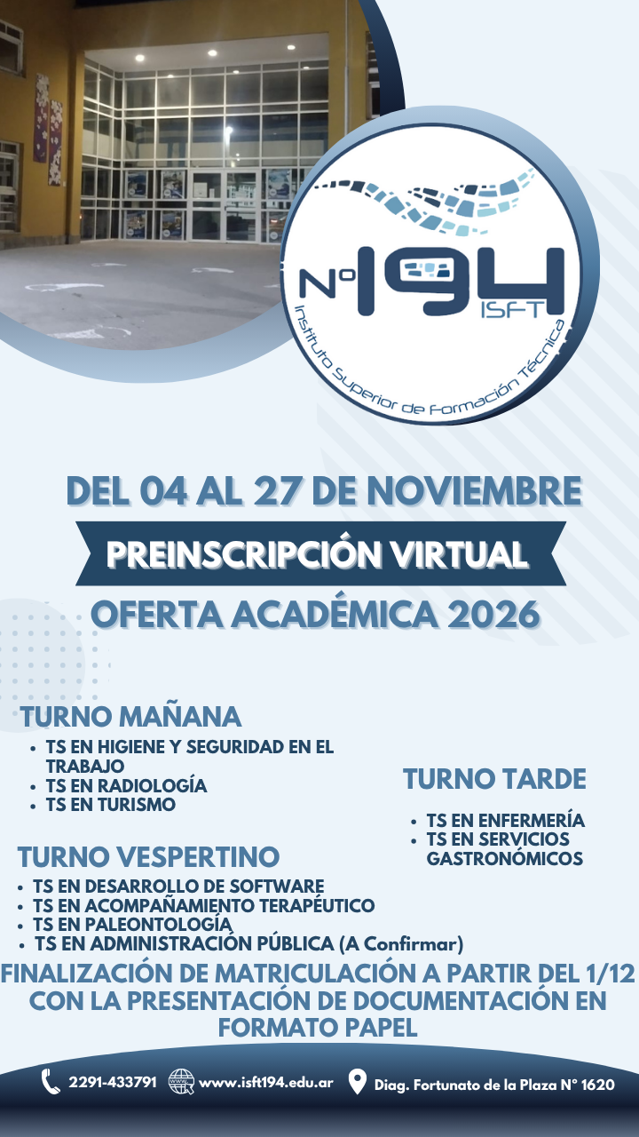 EL HORARIO DE ATENCIÓN DEL ISFT 194 AL PÚBLICO DESDE EL 03/02/2025 AL 04/02/2025 , SERÁ DE 10 HS A 21 HS.